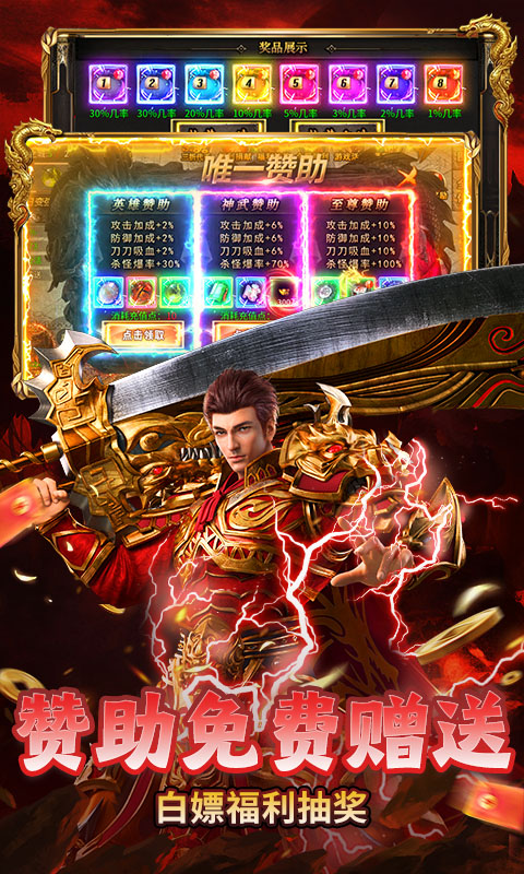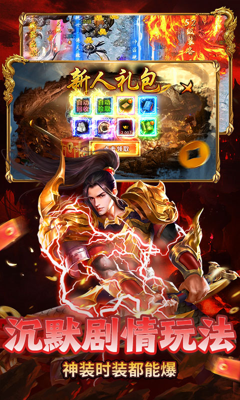 1.创角即送复活神器,施毒术、开天斩两大神技,更有自动回收、自动拾取和海量元宝经验。