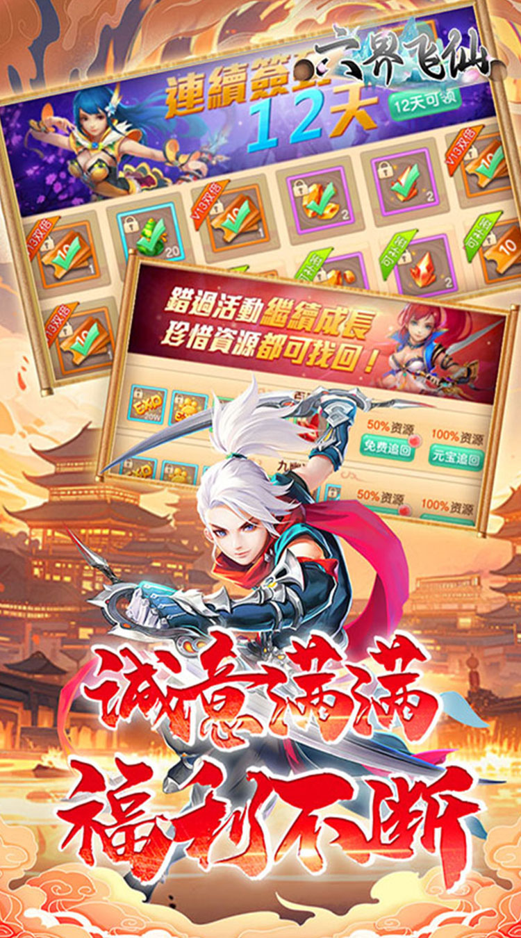 《六界飞仙》0.1折福利版本开启!福利拉满,畅爽修仙!登录即领6480代金券,全场畅享0元购,更赠永久真充卡、VIP13特权及专属GM商城,海量时装道具轻松获取。体验飞升突破、跨服激战、多人副本;亦可邀友品茶论道,漫步主城邂逅惊喜彩蛋,掉落稀有传说神器。即刻下载,畅游唯美六界!