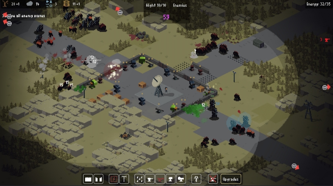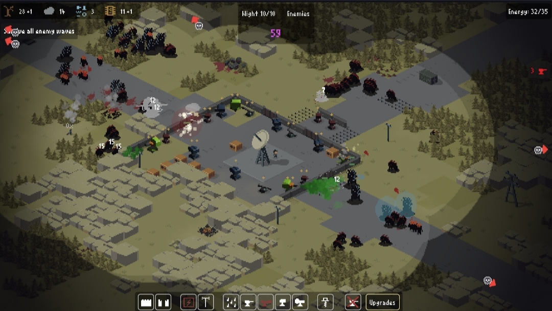 信号区是一款集生存与策略于一体的极简风格游戏,玩家将在这里面对日益严峻的敌人浪潮,守护自己的基地安全。游戏以其简单而深刻的玩法设计,带来紧张刺激的防御战斗体验。每当夜幕降临,敌人数量和强度不断攀升,挑战玩家的反应与决策能力,要求玩家合理利用资源和设施抵御攻势。