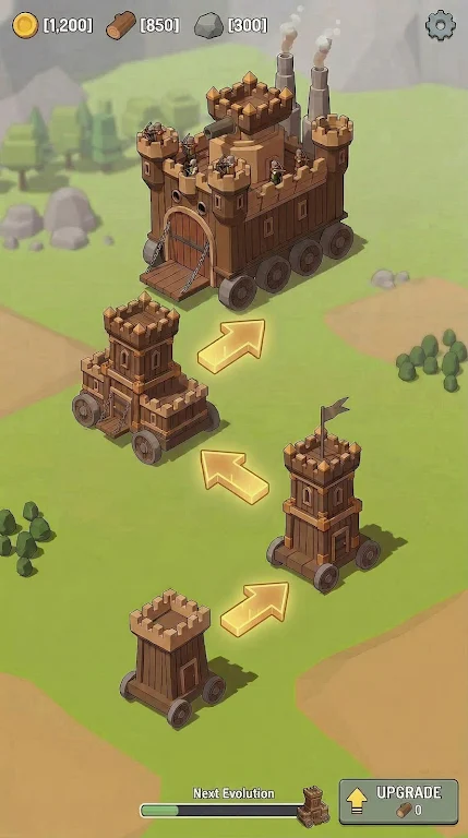 《围城突袭》设有丰富的成长系统,支持多轮游玩。你可以在每场征战后获得经验与战利品,用于解锁更多模块和载具。随着游戏进程推进,新的领袖人物将出现,他们拥有独特能力和专属加成,极大增强堡垒的战斗力。装备的多样化使得你的移动堡垒不断升级,成为一台在木材、钢铁和魔法融合中所打造的无坚不摧的战争机器。